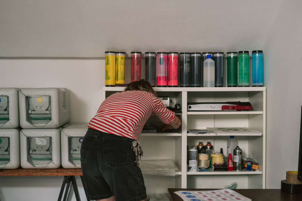 Okrem toho je súčasťou RISKO, kolektívu tlačiarenských remeselníkov. Na špeciálnej RISO tlačiarni tu produkujú grafiky, knihy, odznaky aj limitované ziny. Nezávislé tlače sú Alicine obľúbené. Ľahko sa pri nich vraj zašpiní a teší sa z ich krivoľakosti.